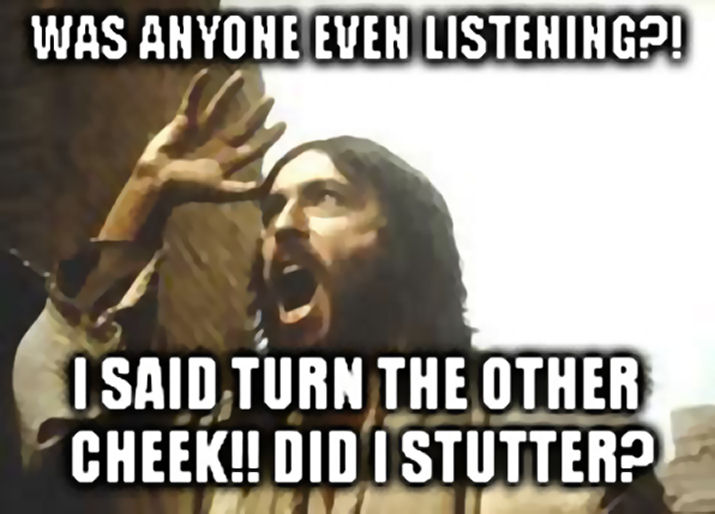 Resist not evil. Love thine enemies. Judge not lest ye be judged. He who is without sin, cast the first stone.