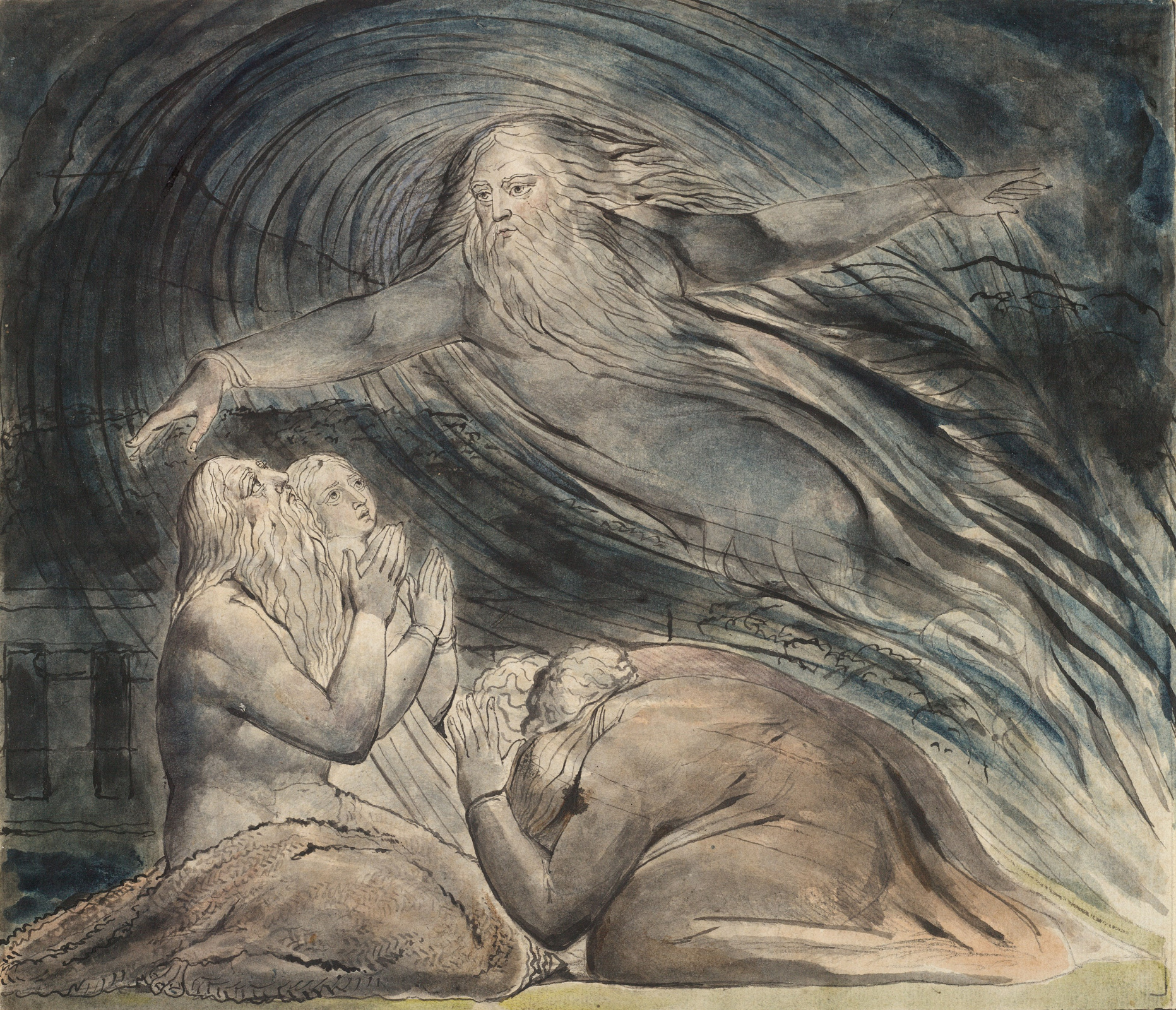 [2] Jack Miles, in God: A Biography, points out that Yahweh speaking from the whirlwind never identifies himself, and suggests that, with all His bluster, He sounds rather like Satan, as if still acting as a proxy. According to the book of Job, there isn’t much difference anyway.