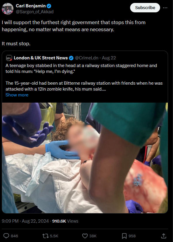 See, for example, the recent X-feed of Carl Benjamin, in response-reaction to woke totalitarianism in the UK, since Heaven-Starmer unleashed his troops: